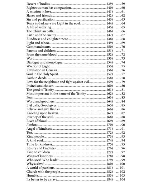 This book is a personal diary of the author. The book contains published texts and parables, with references to Bible verses. The preaching of kind deeds is represented by three entries - kindness, love and angel. The sermon narrates the meaning of kindness, the love of kind works and our condition in receiving the Holy Spirit for kind works. The second part of the book includes 125 parables, which is the author’s most comprehensive collection to date.