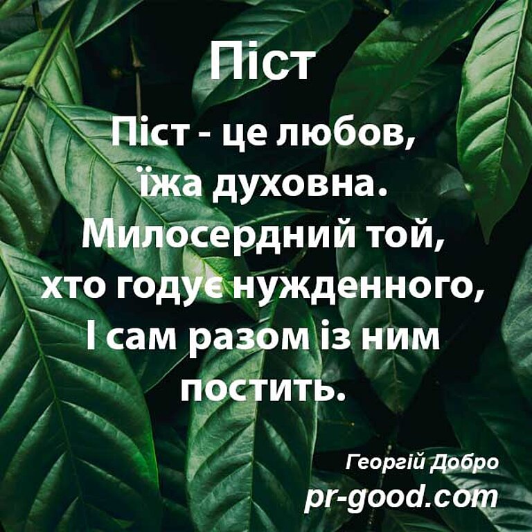 Так говорить Господь Саваот: Піст четвертого, і піст п’ятого, і піст сьомого, і піст десятого місяця стане для Юдиного дому на радість і на втіху, та на веселі свята, але правду та мир кохайте! (Зах 8:19)