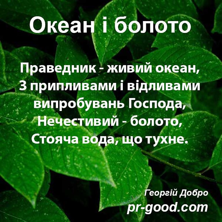 Випробування не служать лікуванням для гордого, тому що зла рослина укорінилася у ньому. Серце розумного обміркує притчу, й уважне вухо є бажання мудрого. Вода погасить полум’я вогню, і милостиня очистить гріхи. (Сир 3:28-30)